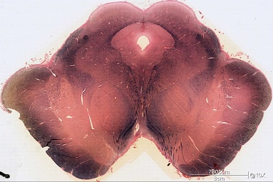 人中腦-經(jīng)上丘橫切全景圖 溶組織阿米巴包囊