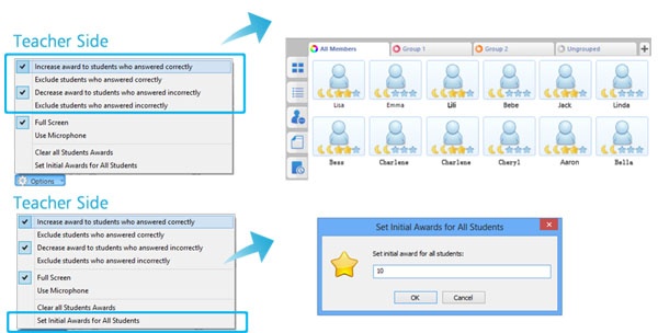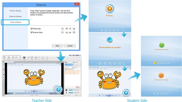抽查抽考、分組比賽、獨立對講、搶答和競賽、分組教學、分發作業、作業提交、收交作業。